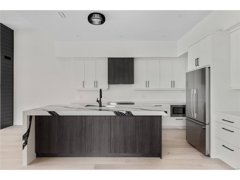 *OH Sat 1-3 PM & Sun 2-4 PM* A statement in modern coastal luxury, this exceptional new build rests on a 7,244 sq ft lot in sought-after Sidney by the Sea. Located on a quiet cul-de-sac, just steps to the Lochside oceanfront promenade and minutes to the iconic Beacon Ave, this home offers an elevated and walkable lifestyle that's next to none. Expansive windows & 12' ceilings fill the Southern exposed great-room with abundant natural light. Boasting a refined gas fireplace & easy access to the beautifully landscaped & fully fenced yard, it's the perfect focal point of the home. A chef-inspired kitchen showcases high-end appliances, custom millwork and premium finishes. The versatile main-floor flex room adapts effortlessly as an office, media space, fitness studio or a comfortable 4th bedroom. Upstairs, a serene primary suite features soaring ceilings and a spa-inspired ensuite. A private rooftop patio captures sweeping ocean views and is ideal for elegant entertaining.