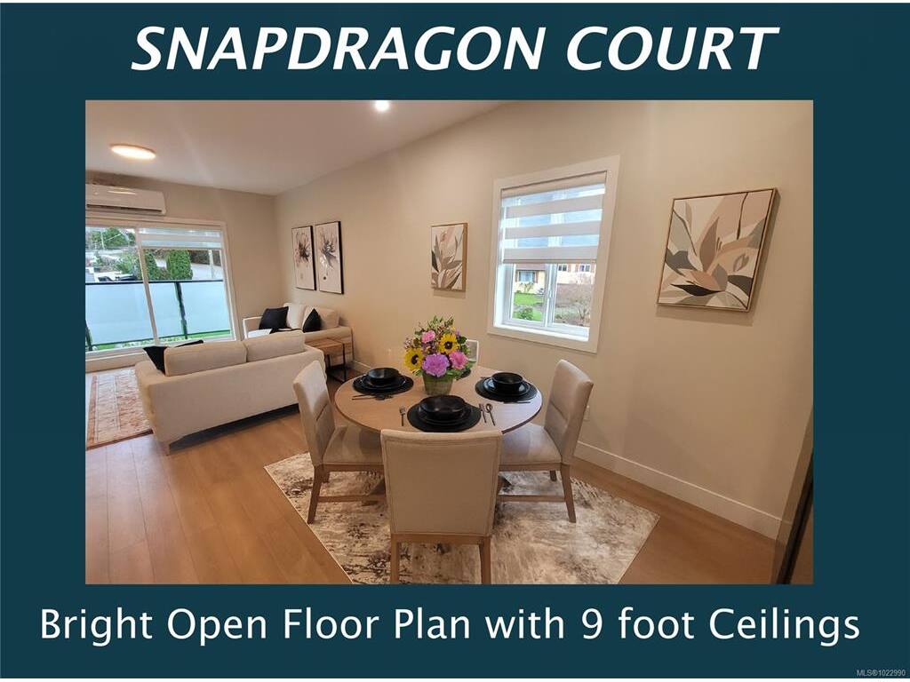 "Brand New Snapdragon Court Townhomes" 2 Bedroom + Den 2 Bathroom Premium Living End Unit with Large Private Yard! Discover modern elegance and superior craftsmanship in these stunning new townhomes at Snapdragon Court. Perfectly situated near Happy Valley School, shopping, parks, the Galloping Goose and transit, these homes blend convenience with contemporary design. Features You’ll Love: • Superior Construction: Built with ICF concrete walls for strength, safety, efficiency, and quiet comfort, • Sustainable Living: 3000 kw of Solar panels on every home. • + EV charger rough-in for future-ready energy solutions, • Peace of Mind: Backed by a 2-5-10 New Home Warranty, • Spacious & Bright: 9-foot ceilings, 14ft vaulted ceilings, and expansive windows, • Designer Interiors: Engineered hardwood & tile flooring, roller blinds, • Custom modern kitchens, pantry, & 6 Appliances! • Efficient heat pump for year-round comfort, • Outdoor Enjoyment: Beautifully landscaped grounds with generous private yards, and sundecks, • Secure Garage and Carport! • RBC Green Mortgage Development (Save $$$) Why Snapdragon Court? - Superior Construction! More than just a place to live—they’re a lifestyle upgrade. With thoughtful design, eco-friendly features, and unbeatable location, Snapdragon Court offers the perfect balance of comfort, style, and community. No GST to Qualified First Time Home Buyers. Open Sat/Sun 1-3p